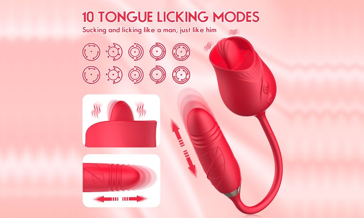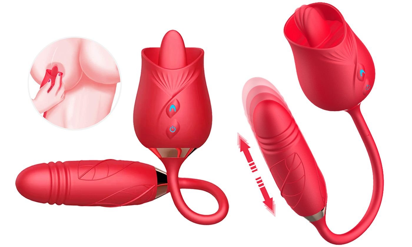 Home > New Rose Flower 3 Generations 2 In 1 Tongue Licking G-spot telescopic Vibrator