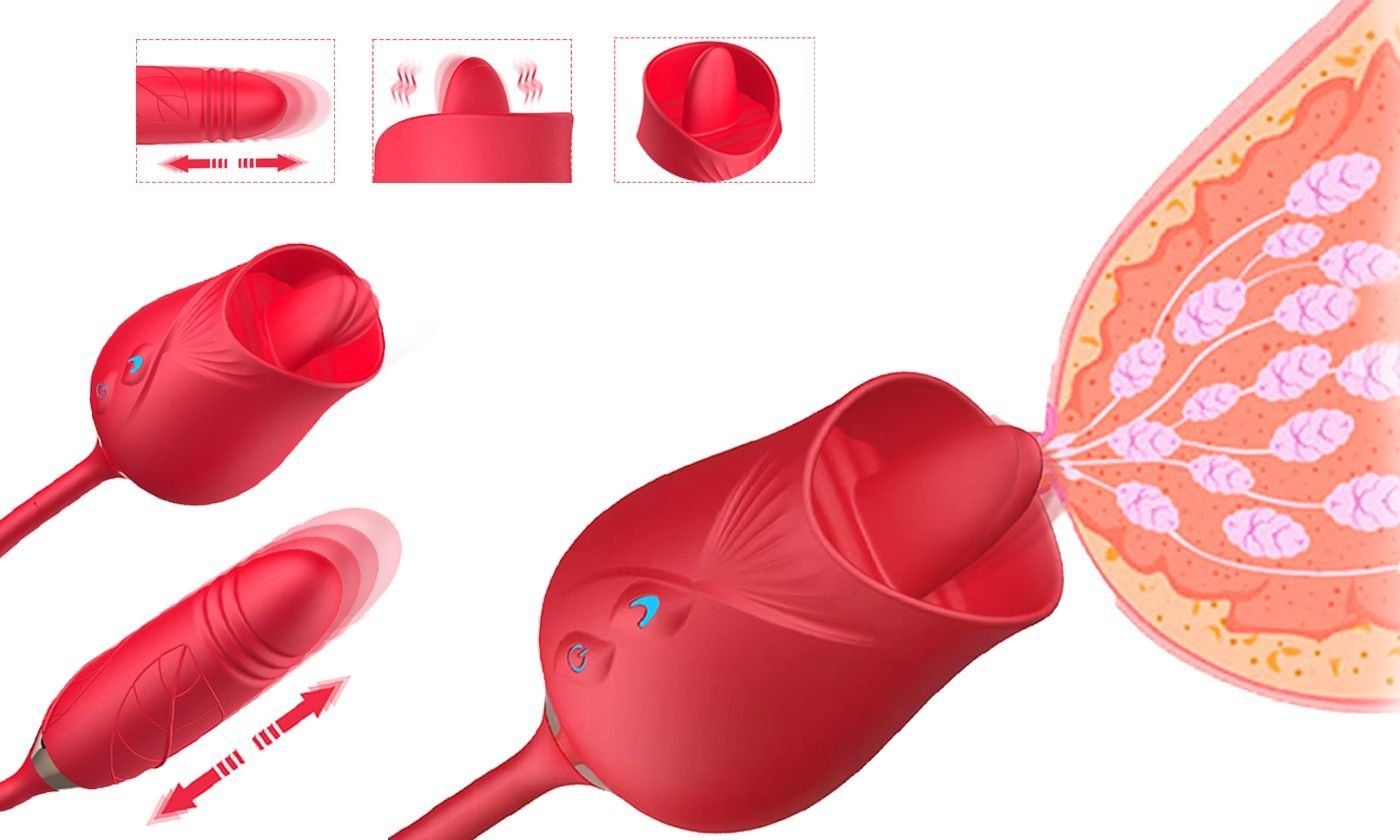 New rose full-cut flower 3 generations double head tongue licking telescopic vibration egg